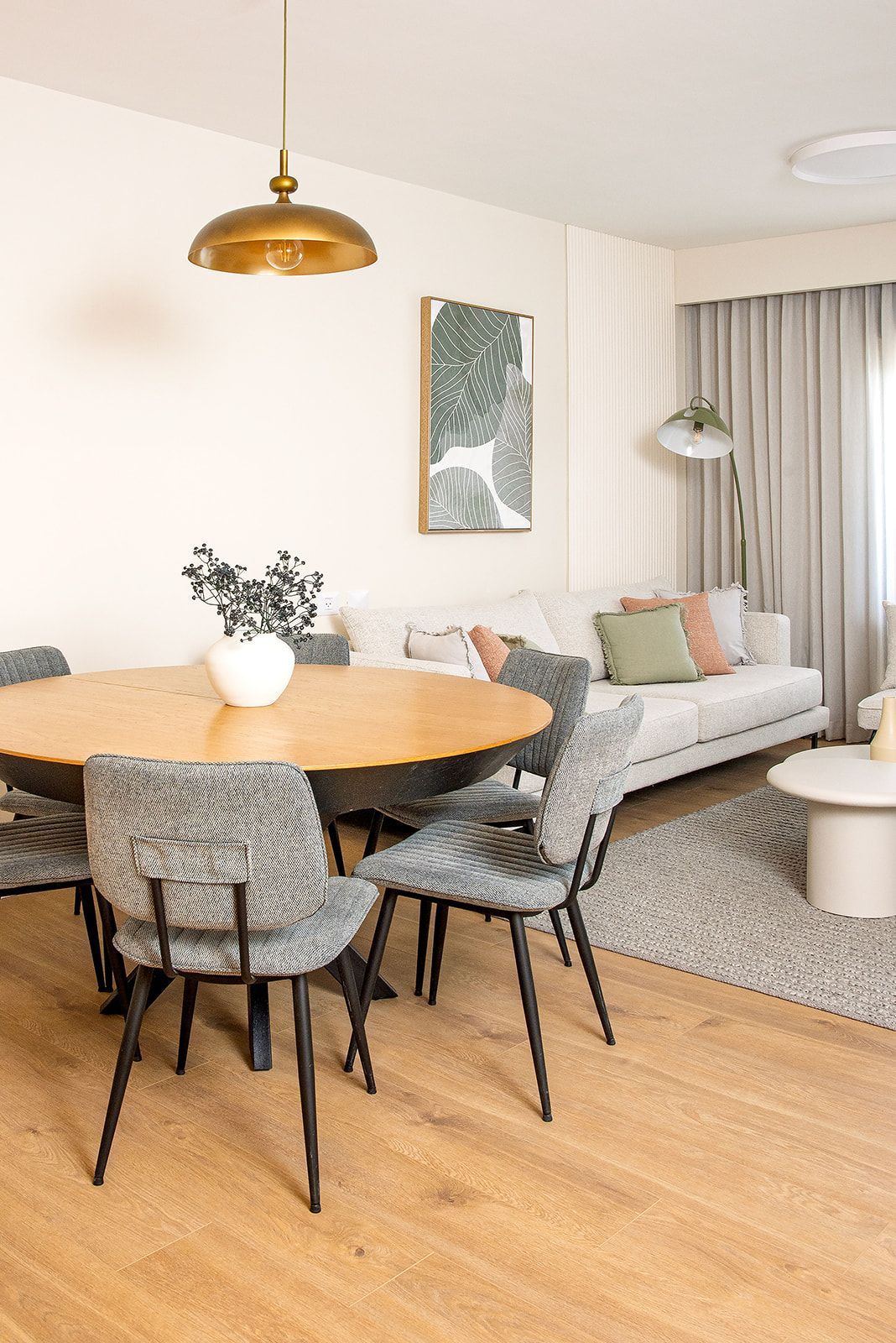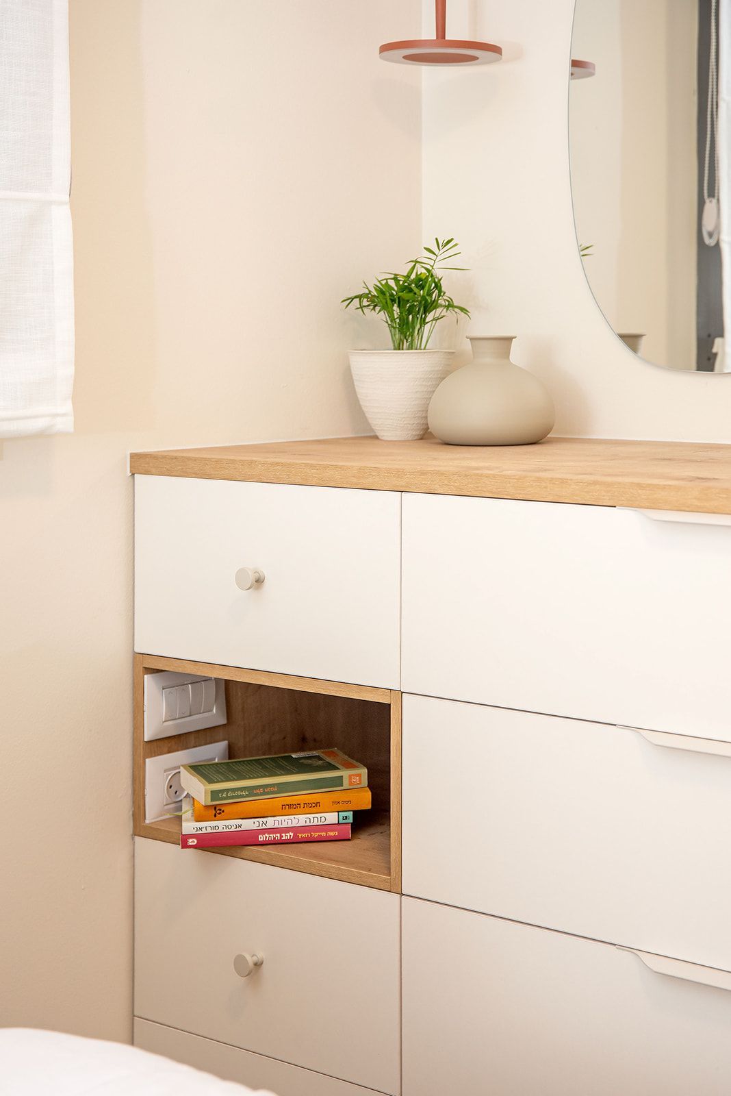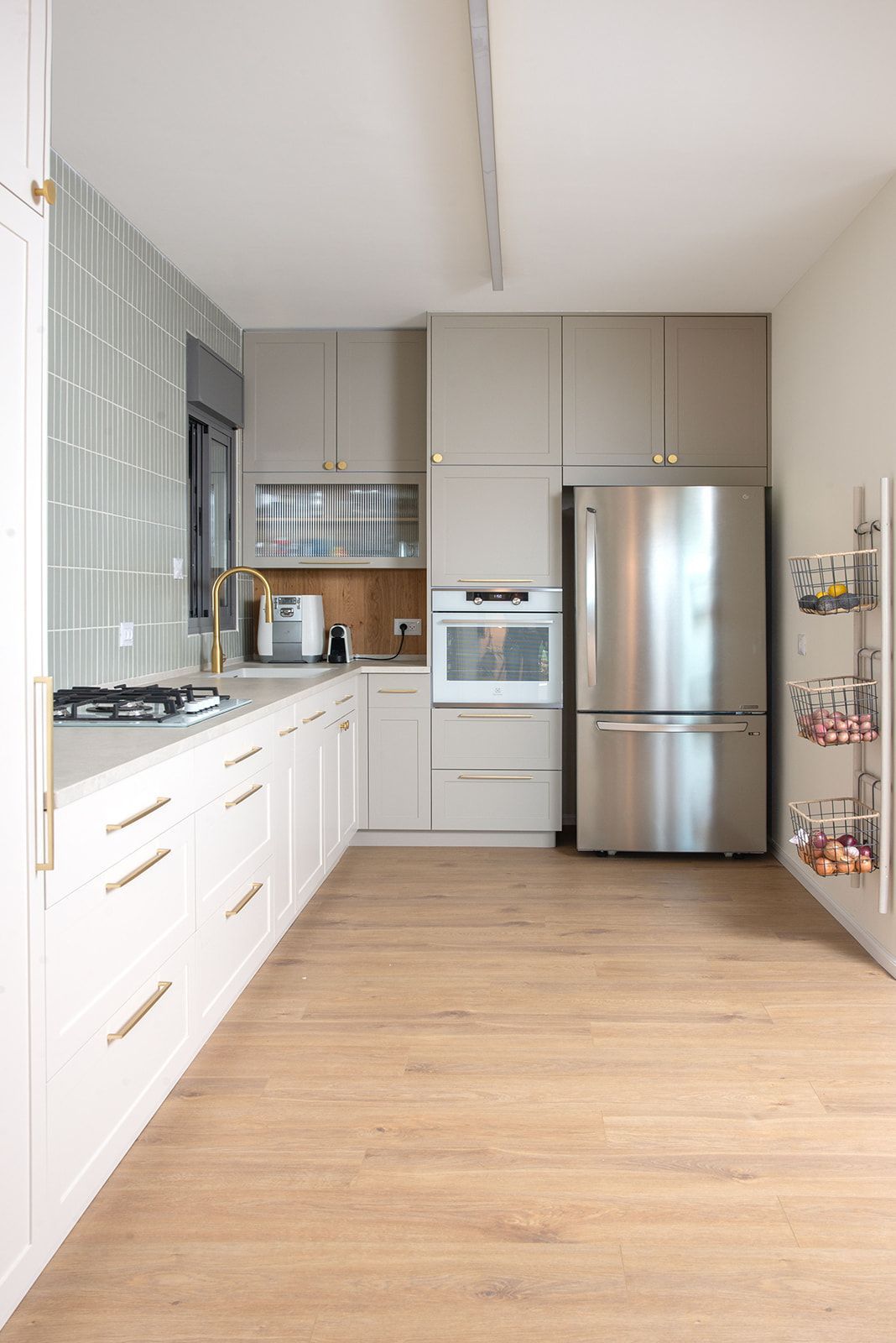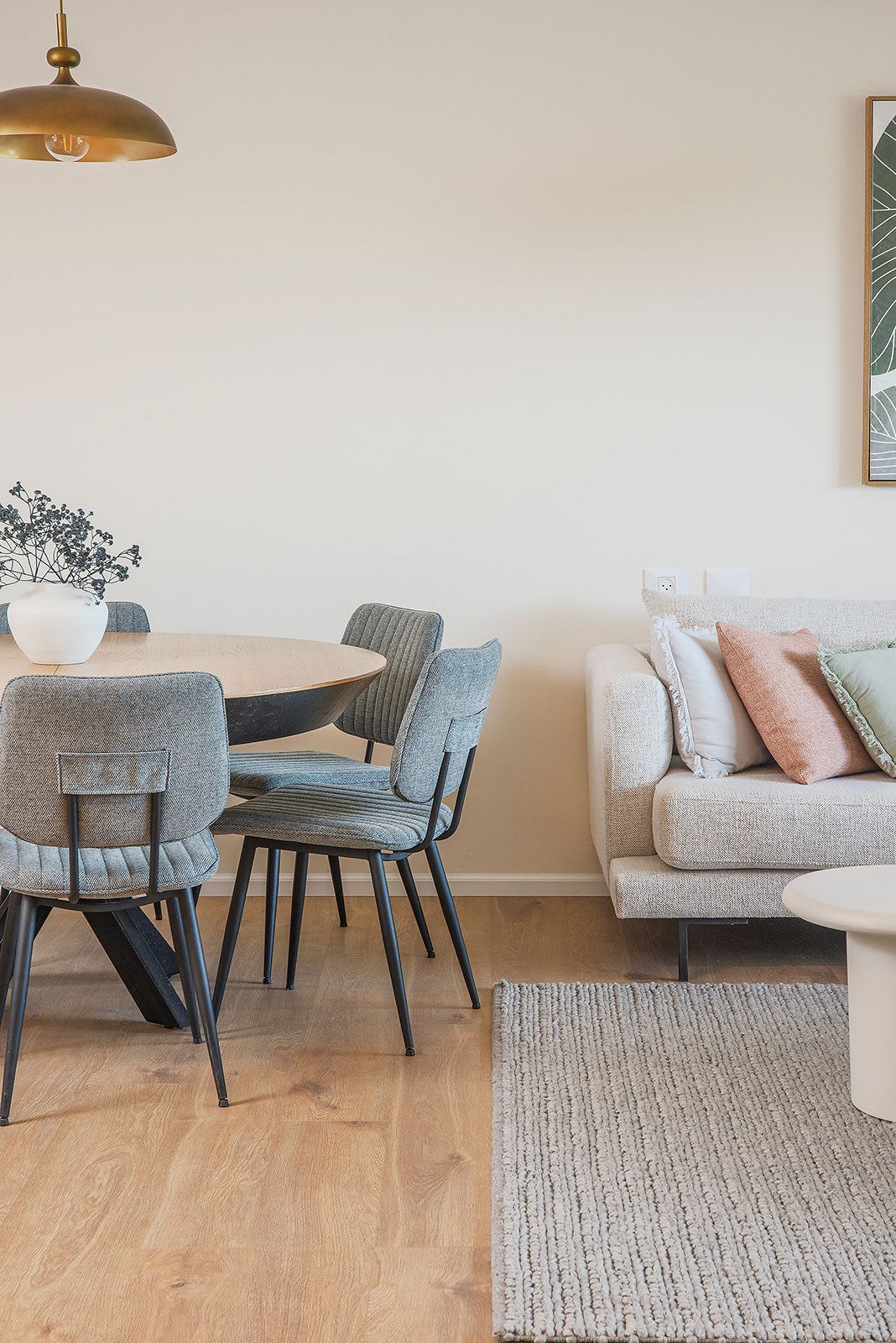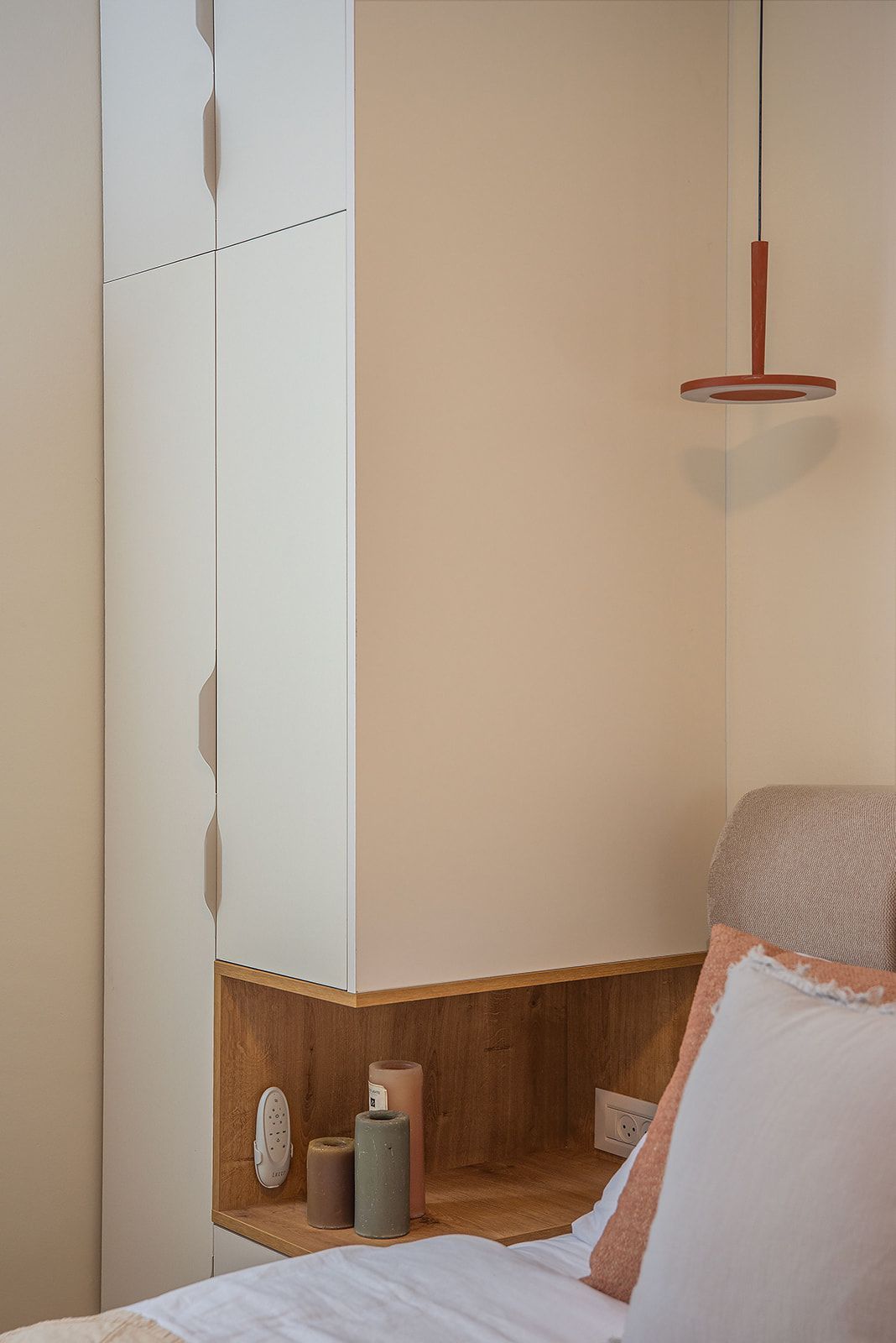 יחד, יצרנו דירה שתפורה בדיוק למידותיהם. פלטת הגוונים שבחרנו, של פסטלים קרים בשילוב גווני בז ועץ, נועדה לייצר תחושת רוגע, מרחב וחיבור לאדמה. השתמשנו בעץ כדי להדגיש את הקשר לטבע,