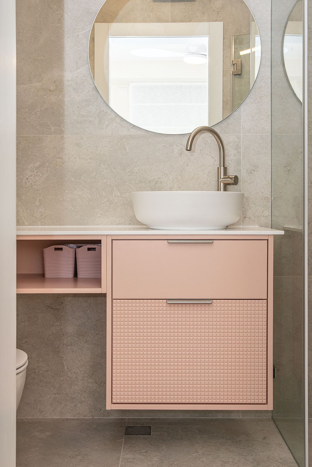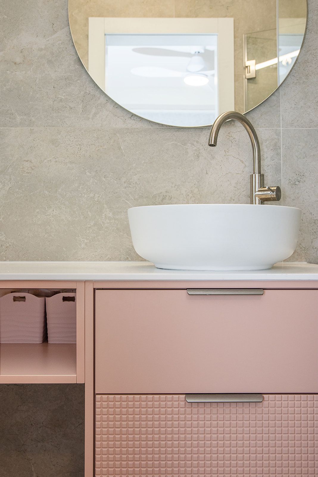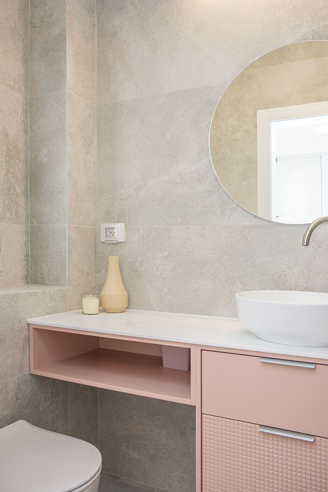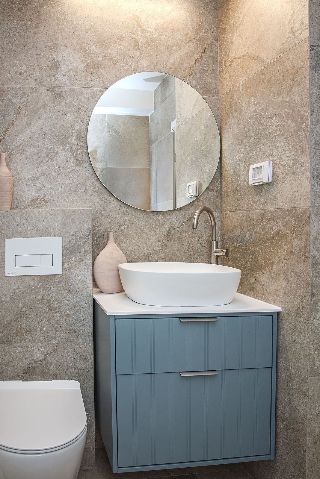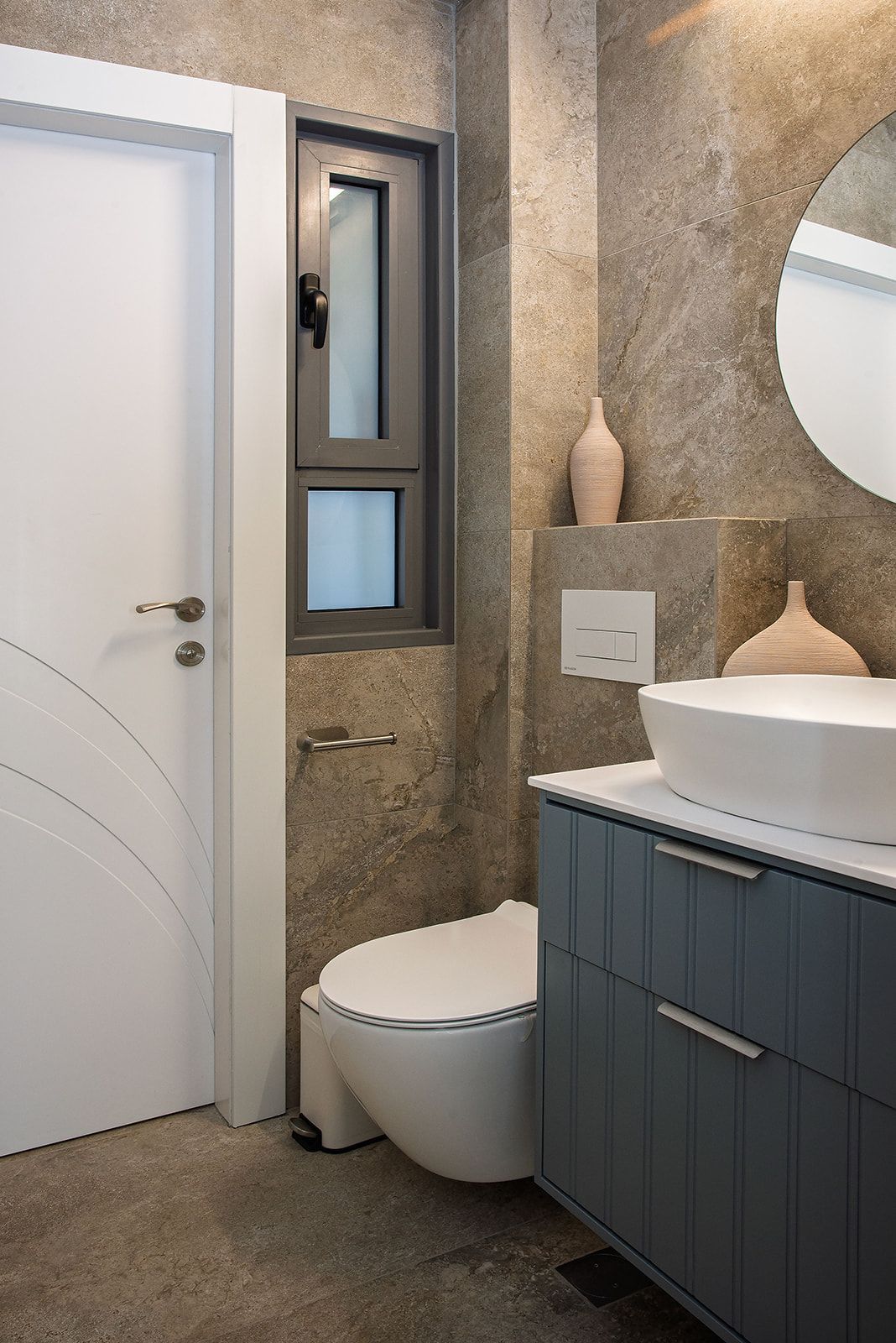 חדר הרחצה הנוסף משמש גם את האורחים והמטופלים, ולכן עוצב בקפידה ופונקציונליות.